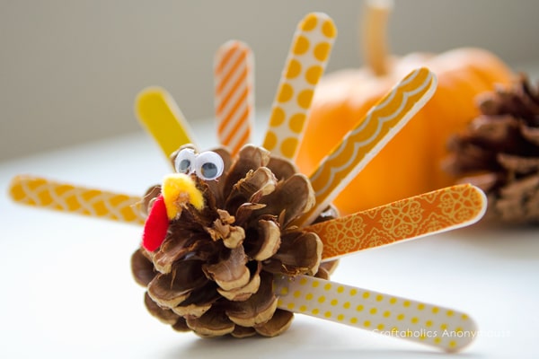 Snowy pinecone candle jars | tutorial: It's an easy craft for fall and also provides lots of fine motor practice for little hands. Pine cone christmas tree · 3. That being said, i honestly am not too upset by it because fall happens to be my. Tape pinecone turkeys are the most adorable table decorations around!